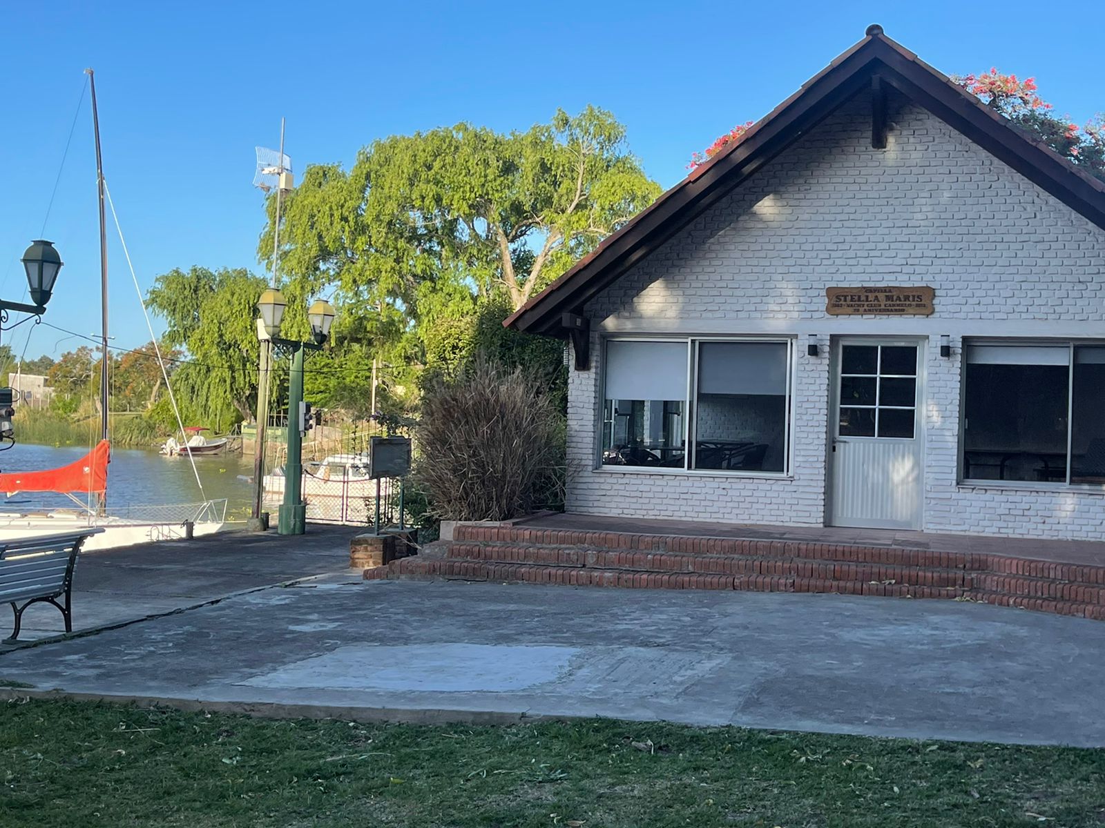Se pavimenta el acceso al muelle y se construye un pórtico de entrada al Club